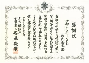 当社の掲げる「全社員救命講習受講」への取り組みが、この度高く評価され表彰されました。